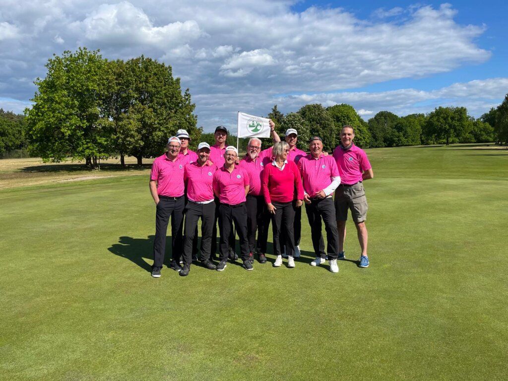 Am letzten Wochenende wurde das Final 4 der AK50 Herren auf der schönen Anlage des GC St.Dionys ausgetragen. Im ersten Halbfinale mussten wir gegen die Mannschaft des HGCs antreten. Ein Spiel nicht ganz auf Augenhöhe, aber chancenlos waren wir nicht. Es war ja ein Lochwettspiel und kein Zählwettspiel. Als Captain des Teams hatte ich im Stillen schon einen Schlachtplan zurechtgelegt, mit dem Ziel den Falkensteinern ein Bein zu stellen. Da war mein Wunsch mehr der Vater des Gedanken, denn es hat nicht geklappt. Die Mannschaft vom HGC war am Samstag eine Nummer zu groß für uns. Wir haben leidenschaftlich gekämpft für unsere 1,5 Punkte. Im Vierer lagen wir schnell zurück und doch wurde hier noch ein halber Punkt erspielt nachdem Oliver Hönow und Peter Stoffersen auf den zweiten 9 Löchern einen Schlag unter Par spielten. Nur so zur Veranschaulichung, auf der 11ten Bahn, einem Par 5, waren Tim Reichelt und Nick Laude mit dem zweiten Schlag im Grünbunker und wir mit dem dritten Schlag ganz hinten auf dem Grün. Tim machte einen sensationellen Bunkerschlag etwa 5 cm neben das Loch und glaubte das Loch schon gewonnen zu haben. Er hatte die Rechnung ohne Oliver gemacht, der den Putt quer durch die Lüneburger Heide im Loch zum Teilen des Lochs versenkte. So raubt man den Gegnern die Nerven. Ebenso machte es Peter auf der 16 mit einem etwa 20m Putt zum Birdie und Lochgewinn. Die Einzel wurden auf einem extrem hohen Niveau ausgefochten. Zum Beispiel Jörg Kappmeier war im Spiel gegen Thomas Barth nach 6 Löchern drei down, lag aber noch Par. Thomas hatte aber schon drei Birdies auf der Uhr. Ähnlich erging es Frank Armbrecht, der zwar an diesem Tag sein A-Spiel ausgepackt hatte aber dennoch gegen Philipp Dous unterlag. Ein paar Löcher habe ich dieses Match aus der Nähe beobachtet, hier wurde ein Grün nach dem anderen getroffen und es entschied sich nur durch die Putterei, wo Philipp das glücklichere Händchen hatte. Sebastian Burgarth durfte/musste gegen den Ex-Nationalspieler Christian Domin ran, auch hier zogen wir den Kürzeren. Lediglich unser „Neueinkauf“ Simon Boldt konnte den Kapitän der Falkensteiner Markus Schuldt niederringen, nach sehr hartem Kampf. So lautete das Ergebnis dann auch 3,5 zu 1,5 für die Falkensteiner. Im zweiten Halbfinale trafen der GLC Hittfeld und der Golf Club Hamburg Wendlohe aufeinander. Dieses Halbfinale wurde erst im Stechen zugunsten der Hittfelder entschieden. Somit war klar, dass wir am Sonntag um die Bronzemedaille gegen die Wendloher antreten durften und im Finale dann Hittfeld gegen Falkenstein.